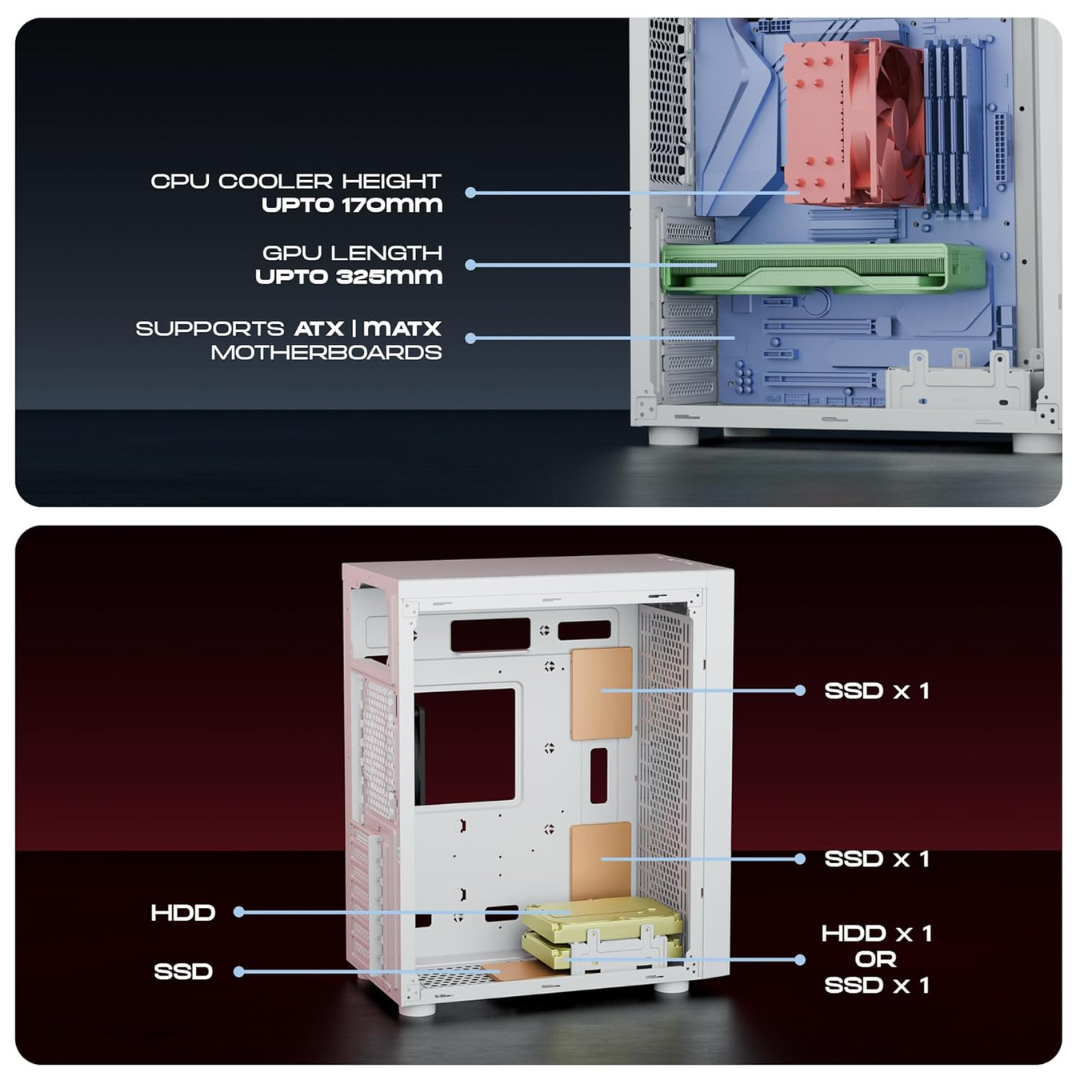 • GPU: up to 325mm | CPU cooler: up to 170mm