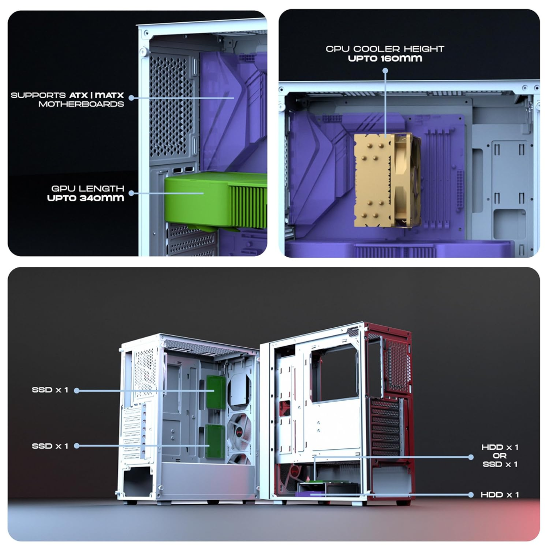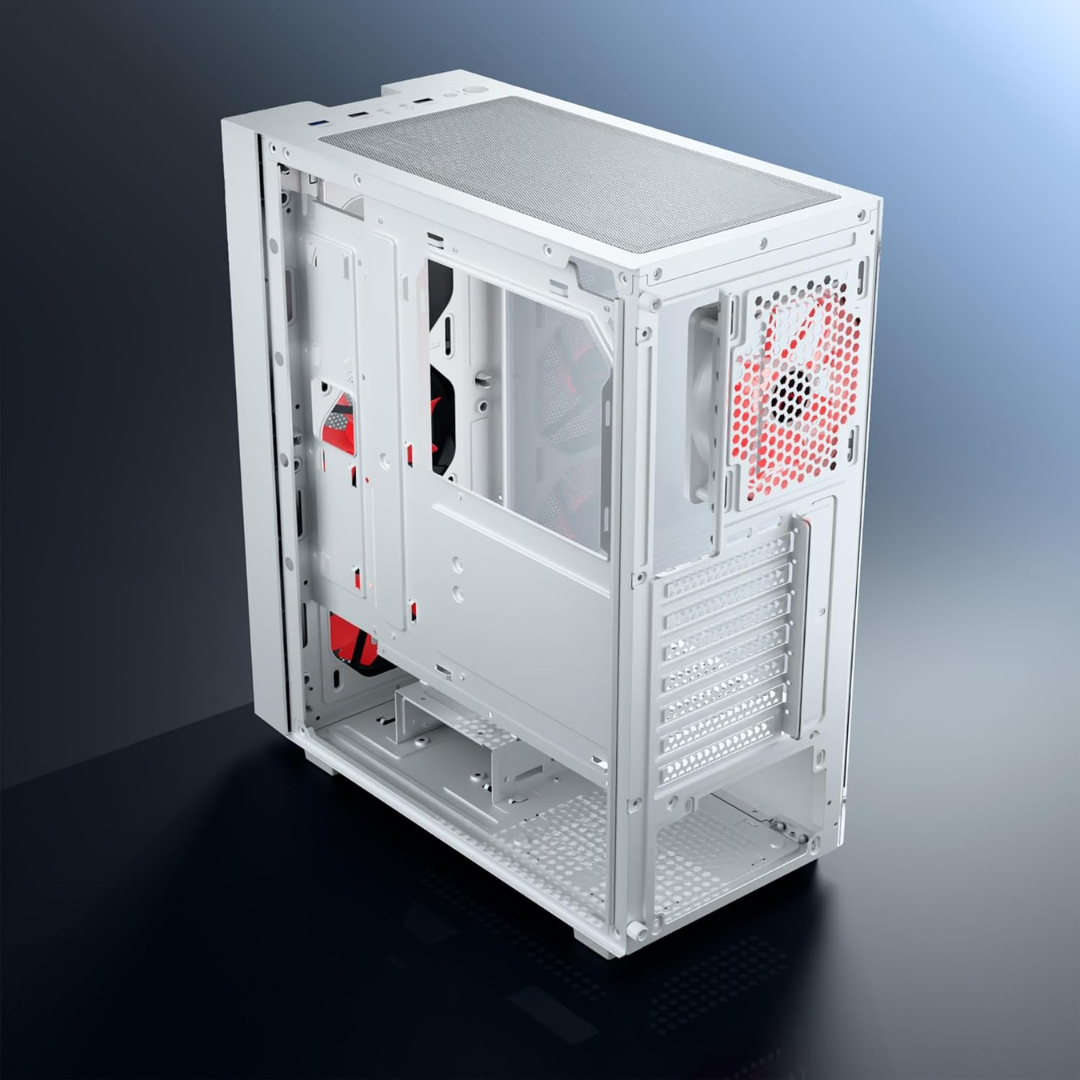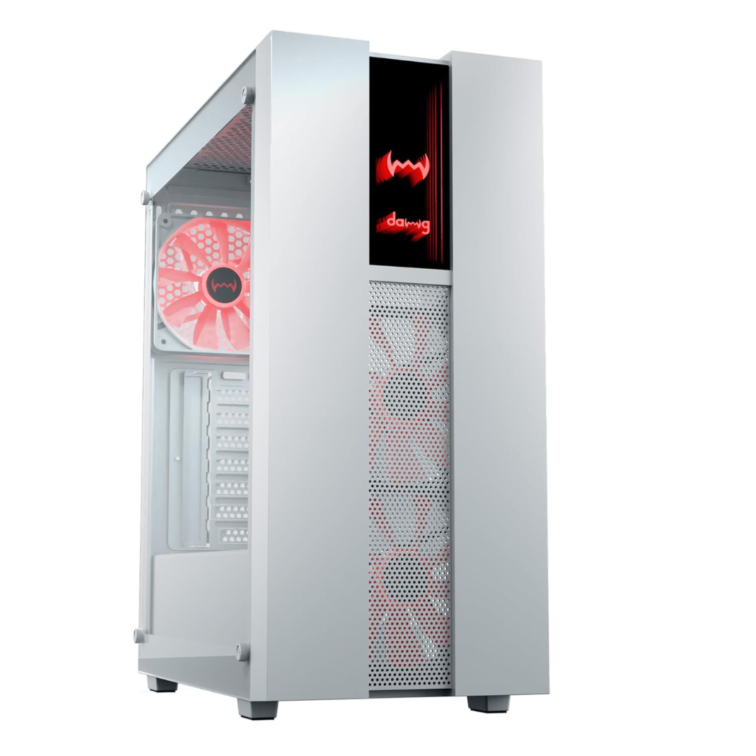 daWg V Series 350 Mid-Tower Gaming Cabinet (White) – 3 Multicolor Fans, Tempered Glass