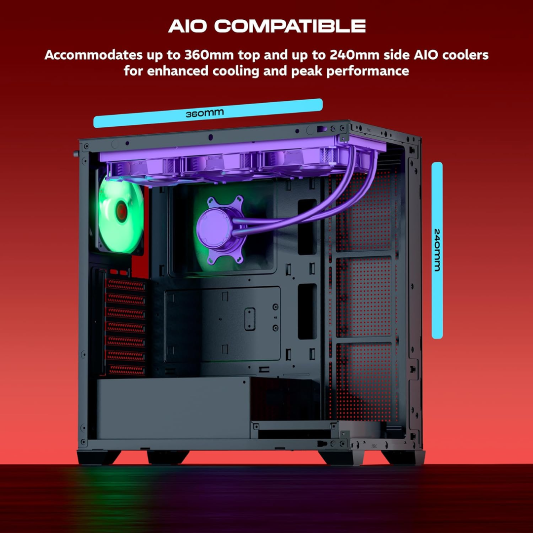 Supports AIO coolers: 360mm (top) / 240mm (side)