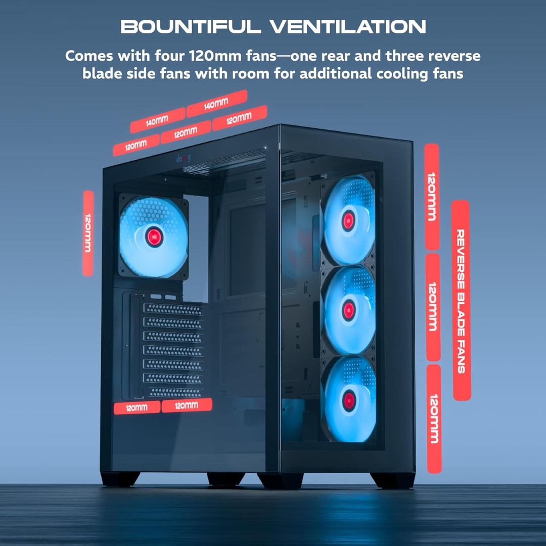 daWg X Series 520 Mid-Tower Gaming Cabinet (Black) – 4 ARGB Fans, Wraparound Glass