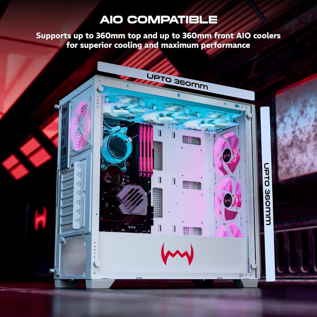 daWg X Series 540 Full-Tower Gaming Cabinet (White) – 4 ARGB Fans, Glass Panel, AIO Support